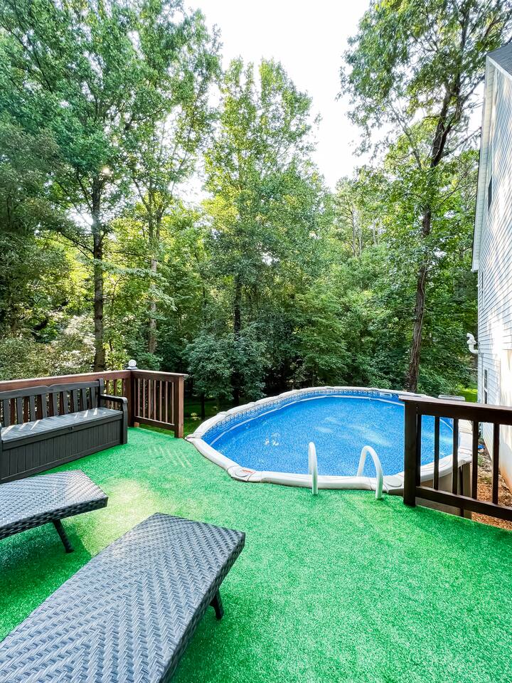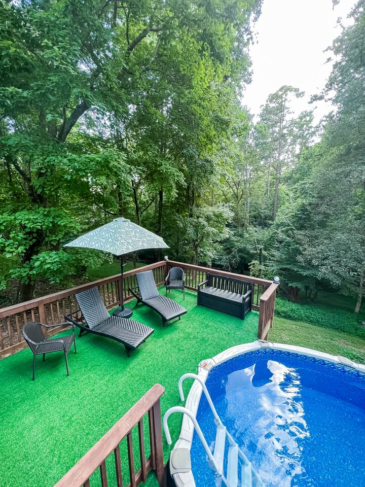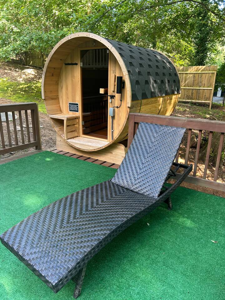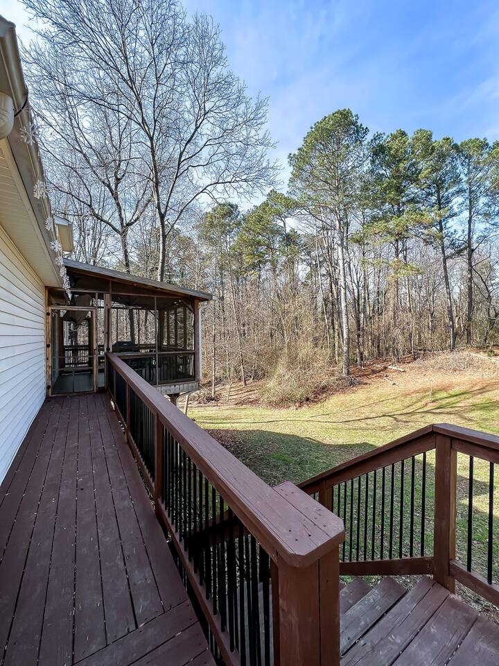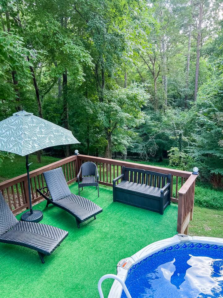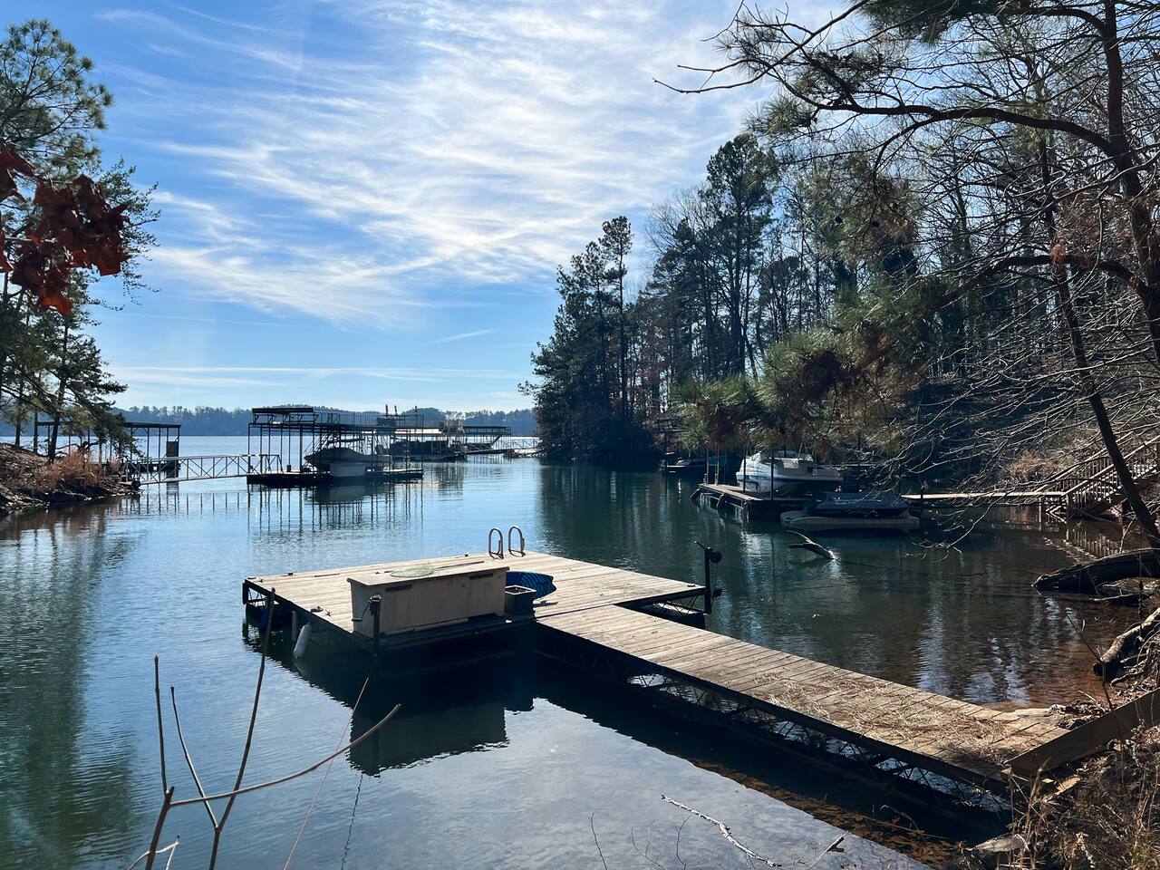 Retreat with everything you need. Fully furnished and tastefully designed 3 bedroom home on a quiet 1 acre private property, with a short 5 min walk to a private boat dock. Enjoy our new barrel sauna (extra fee applies) Home has all the conveniences for a perfect getaway., campfire in the evening or just enjoy wildlife site seeing. Rent a boat and explore Lake Lanier or relax by the pool. Great for families and those looking to get away to recharge. * POOL CLOSES END OF SEP, OPENS IN MAY!!