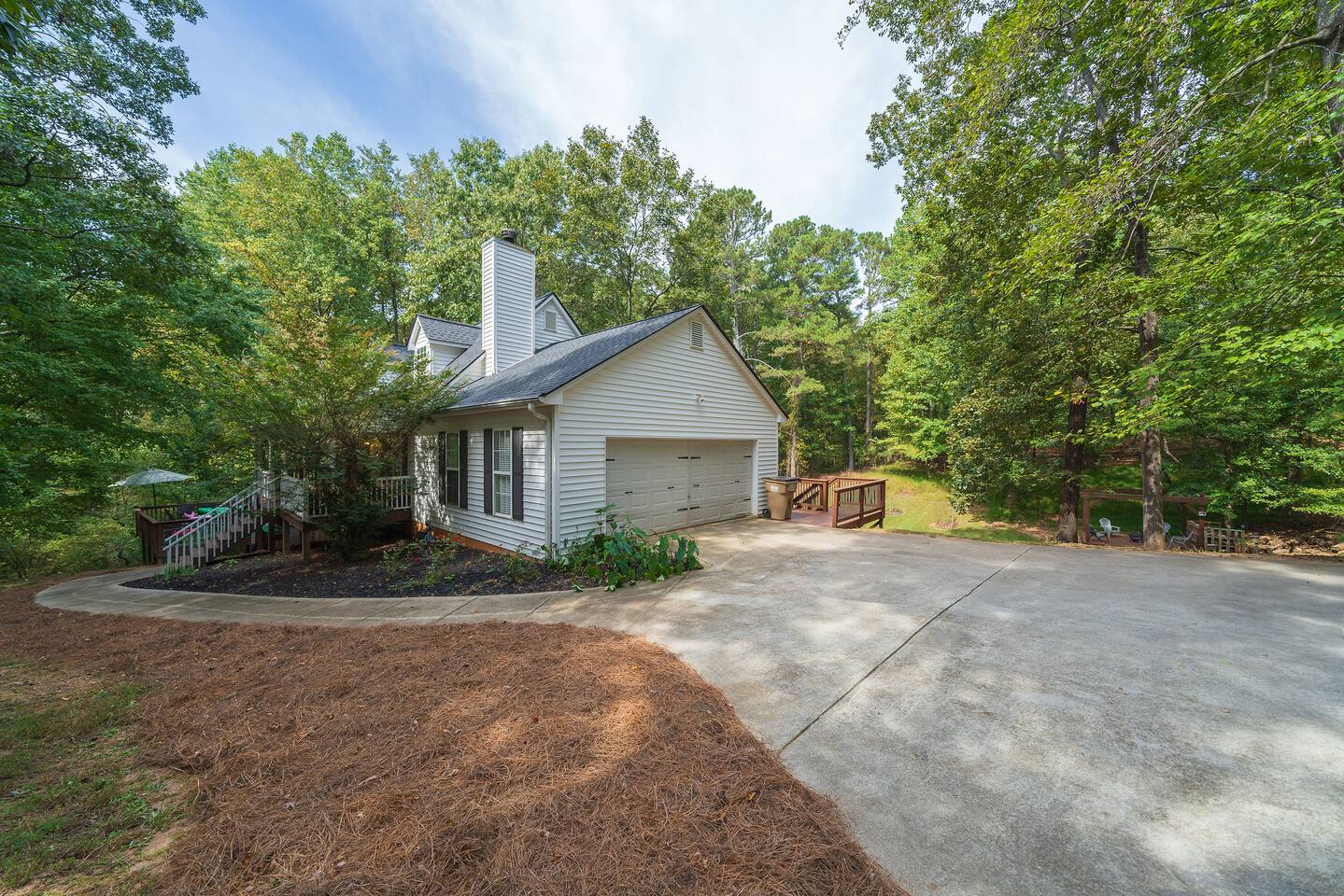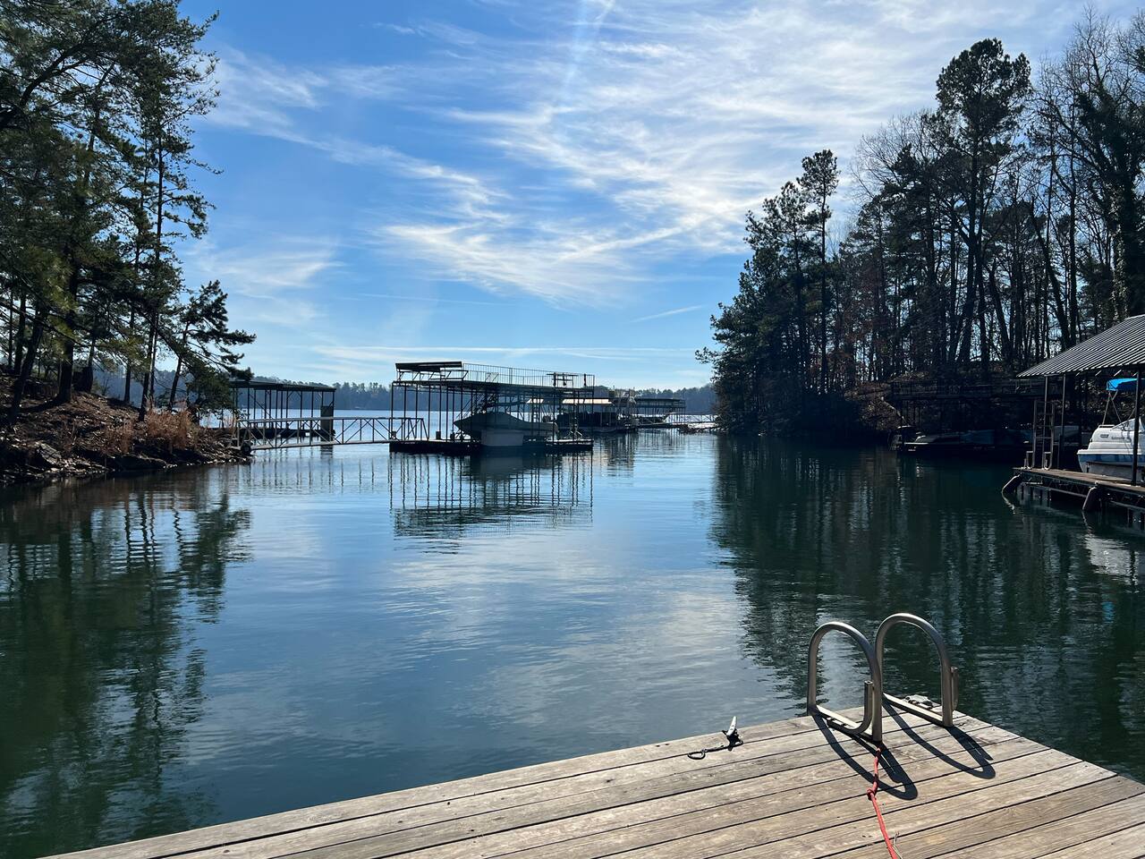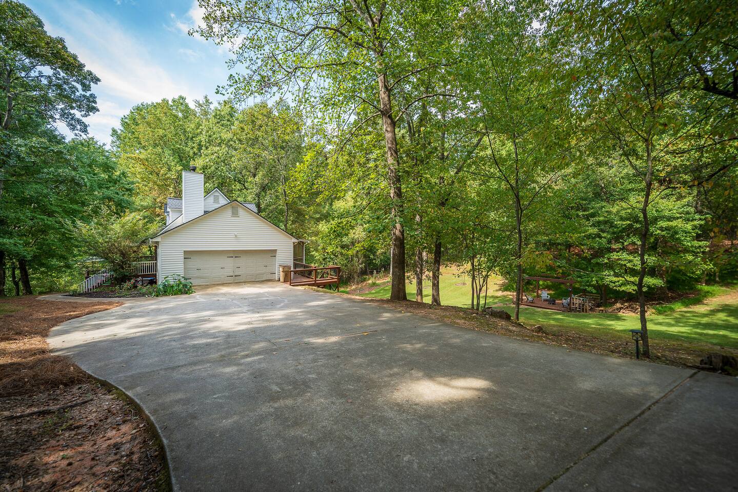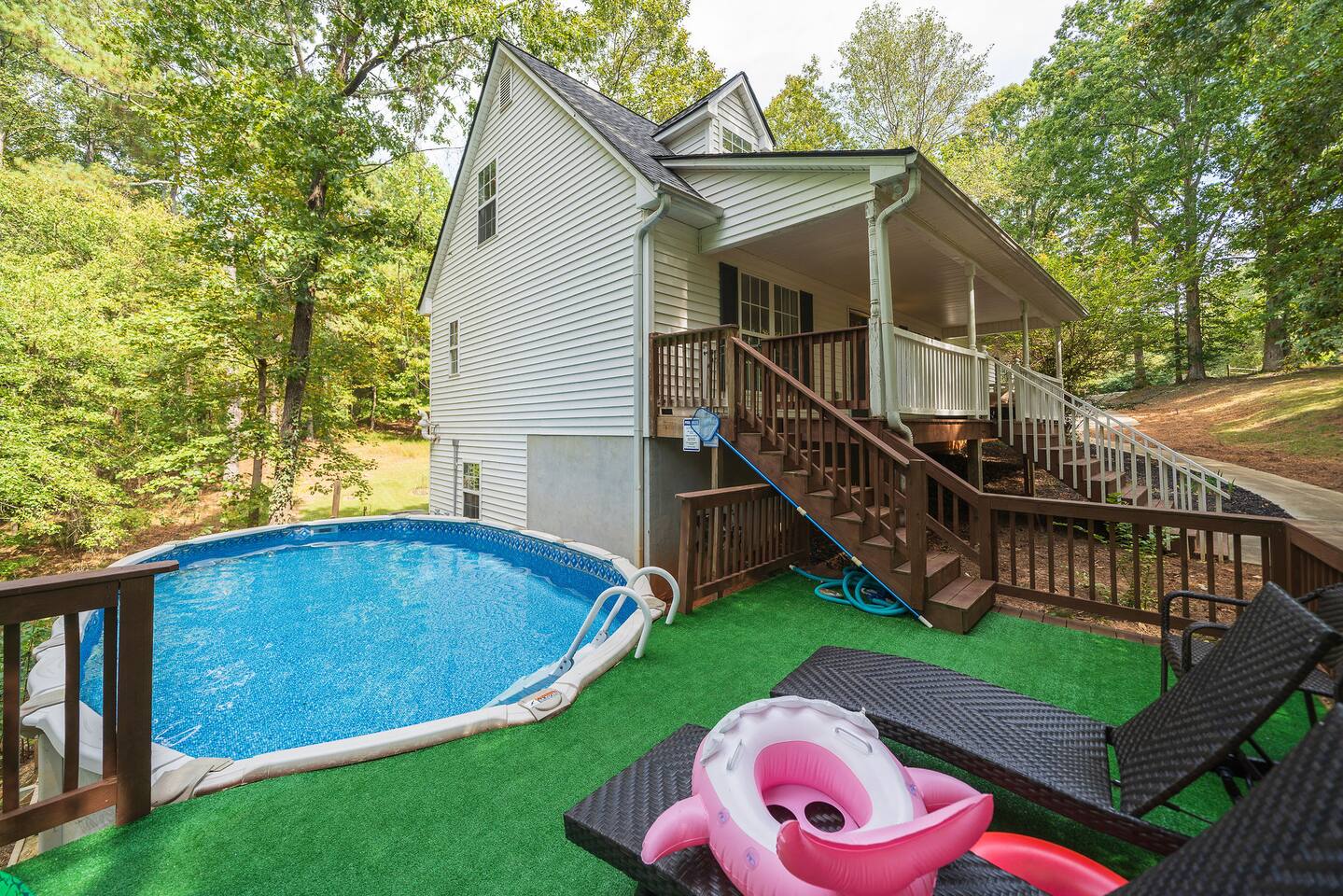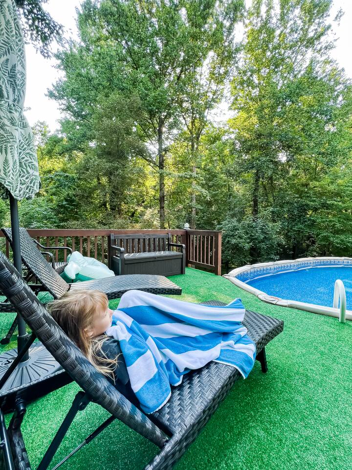 Retreat with everything you need. Fully furnished and tastefully designed 3 bedroom home on a quiet 1 acre private property, with a short 5 min walk to a private boat dock. Enjoy our new barrel sauna (extra fee applies) Home has all the conveniences for a perfect getaway., campfire in the evening or just enjoy wildlife site seeing. Rent a boat and explore Lake Lanier or relax by the pool. Great for families and those looking to get away to recharge. * POOL CLOSES END OF SEP, OPENS IN MAY!!