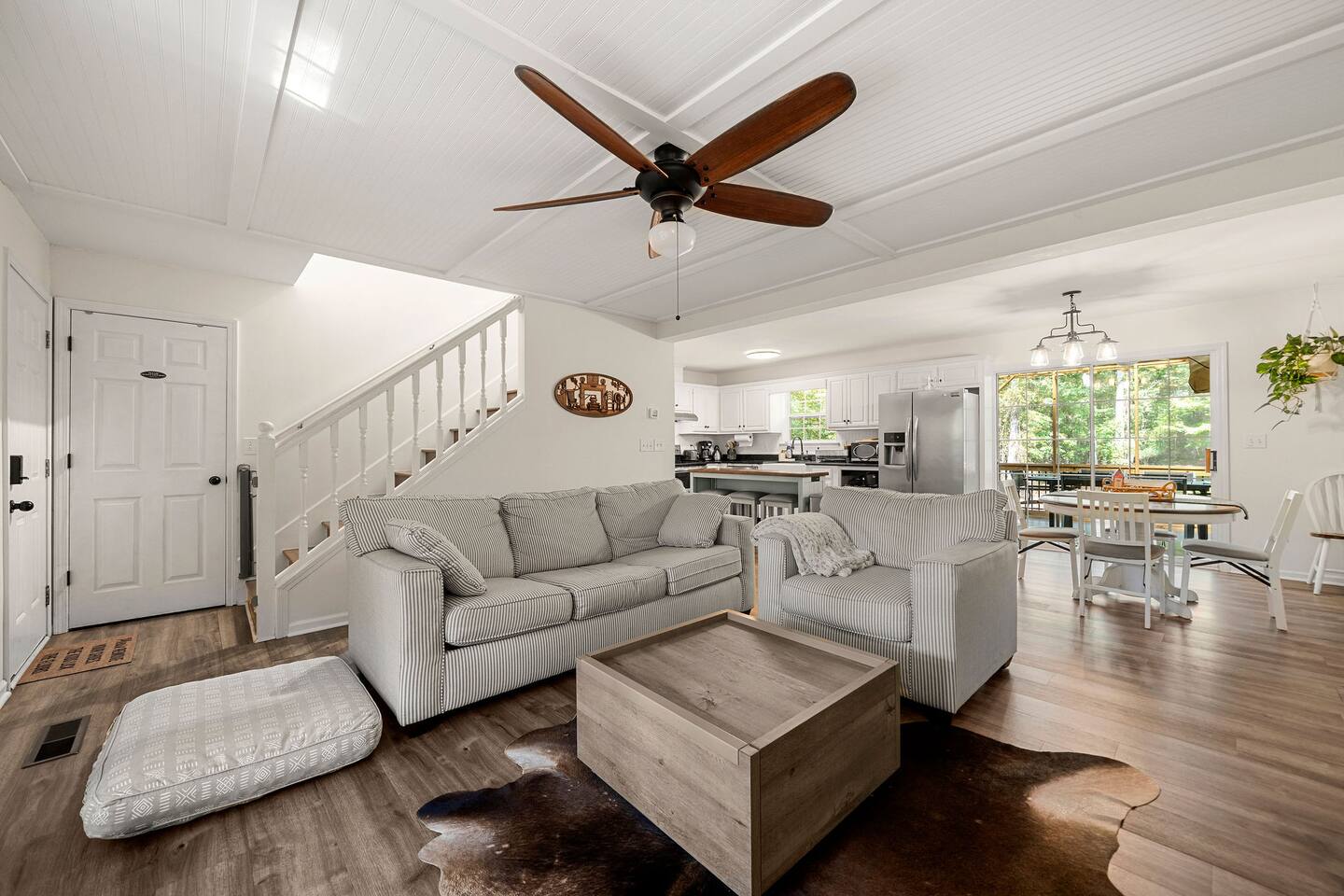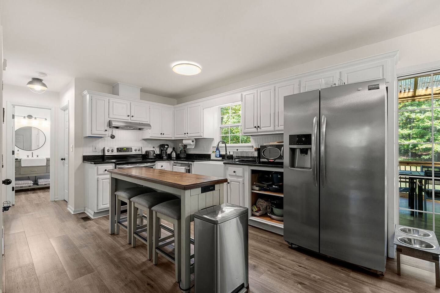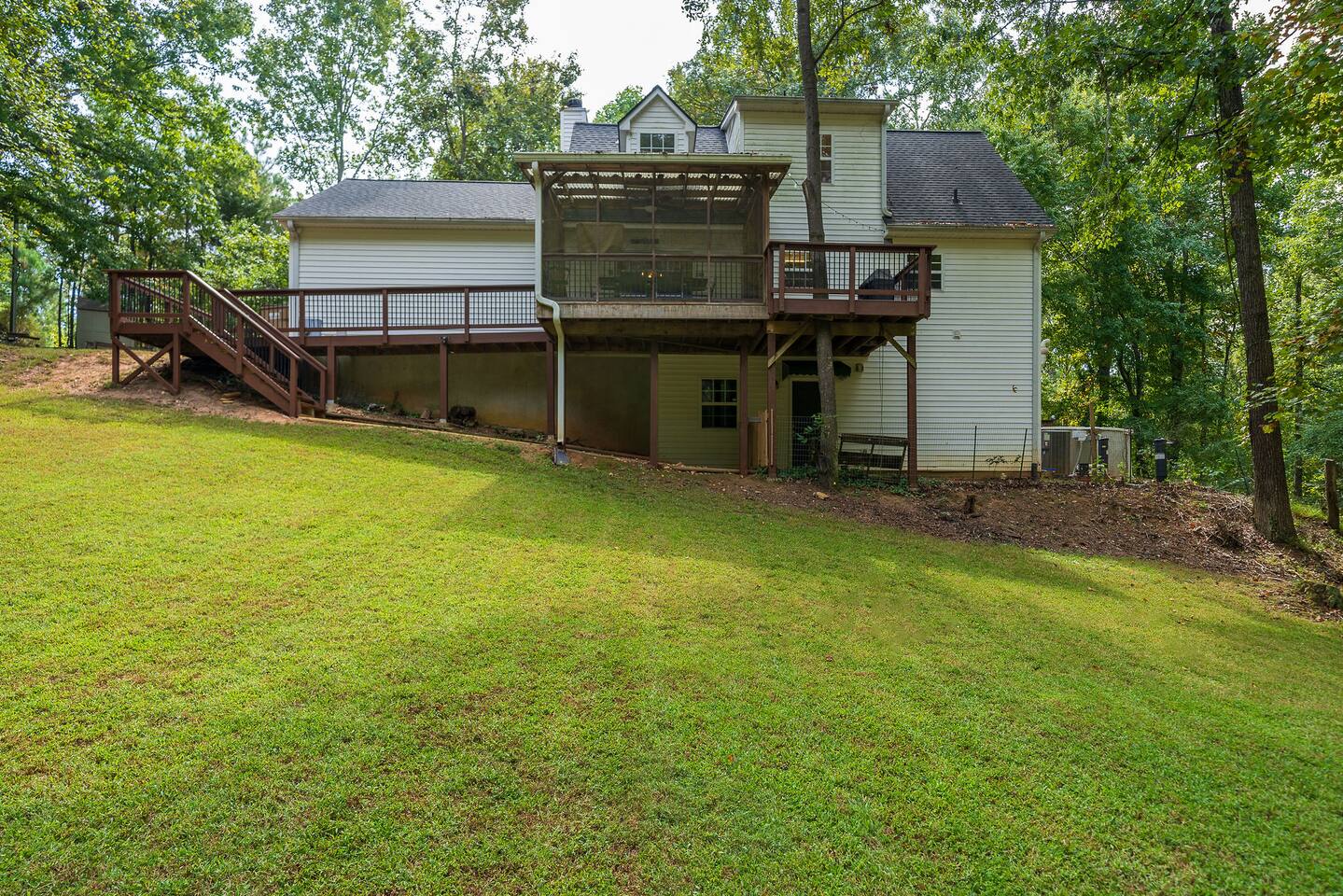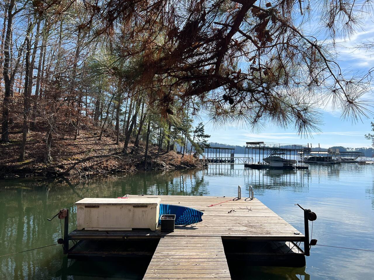 Retreat with everything you need. Fully furnished and tastefully designed 3 bedroom home on a quiet 1 acre private property, with a short 5 min walk to a private boat dock. Enjoy our new barrel sauna (extra fee applies) Home has all the conveniences for a perfect getaway., campfire in the evening or just enjoy wildlife site seeing. Rent a boat and explore Lake Lanier or relax by the pool. Great for families and those looking to get away to recharge. * POOL CLOSES END OF SEP, OPENS IN MAY!!