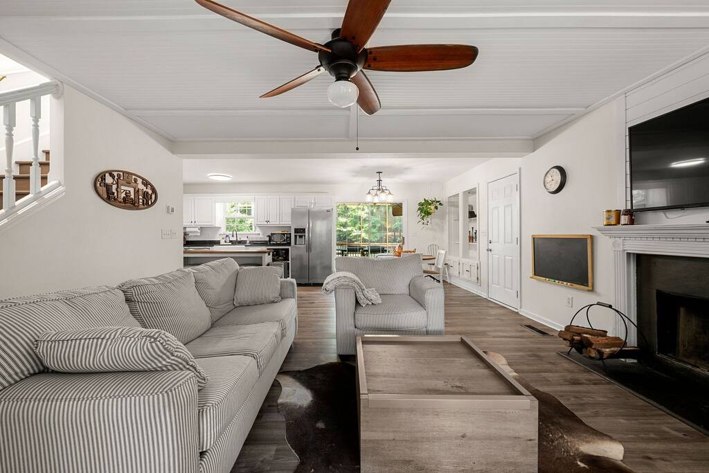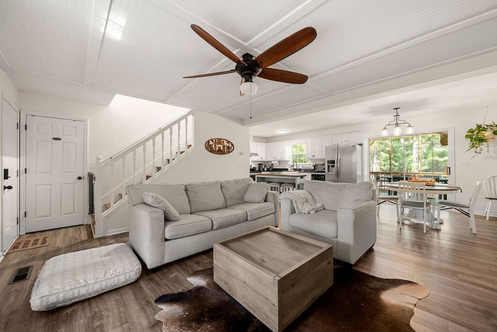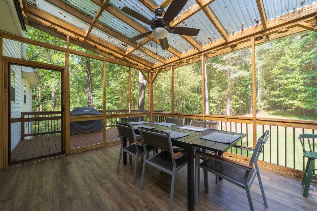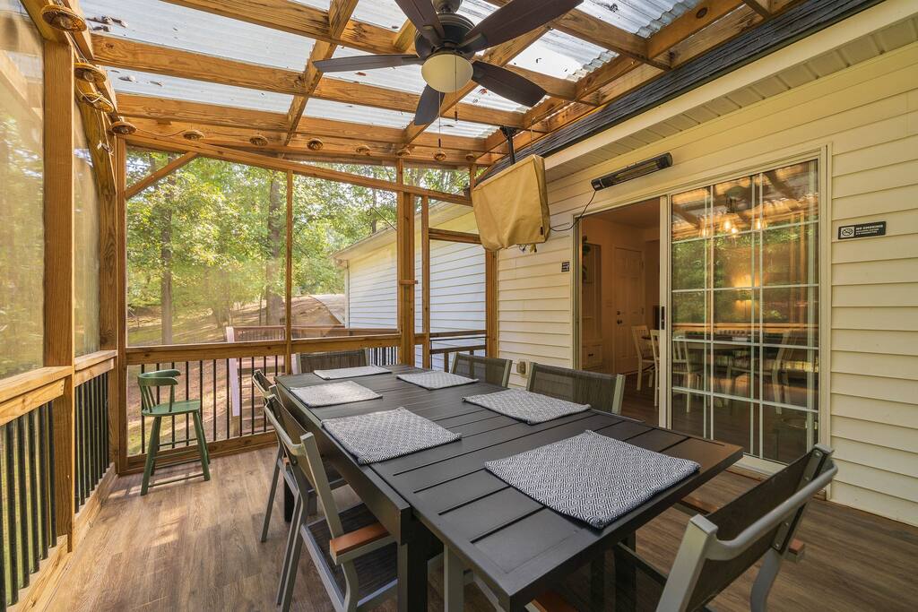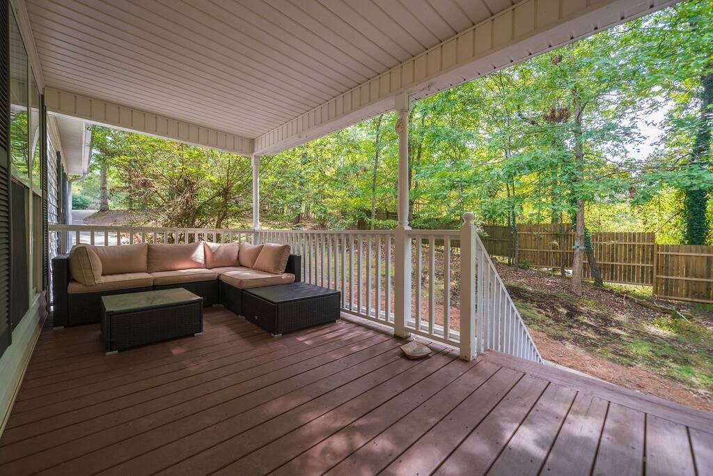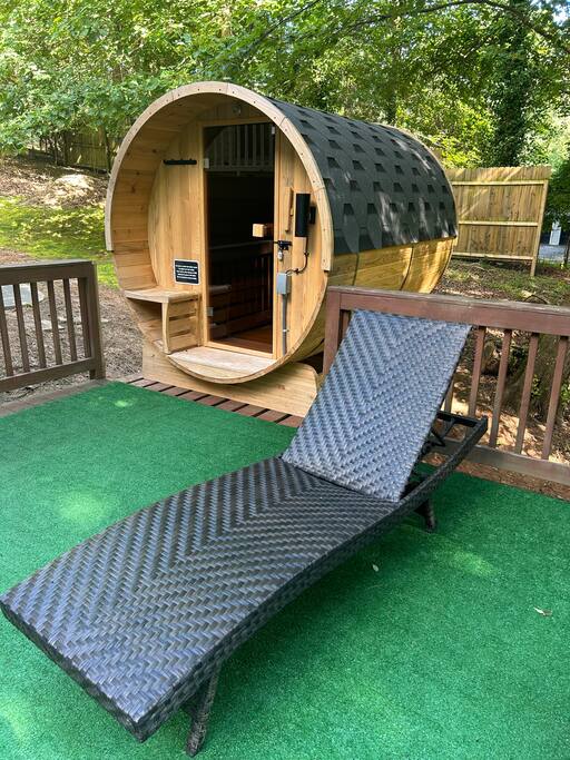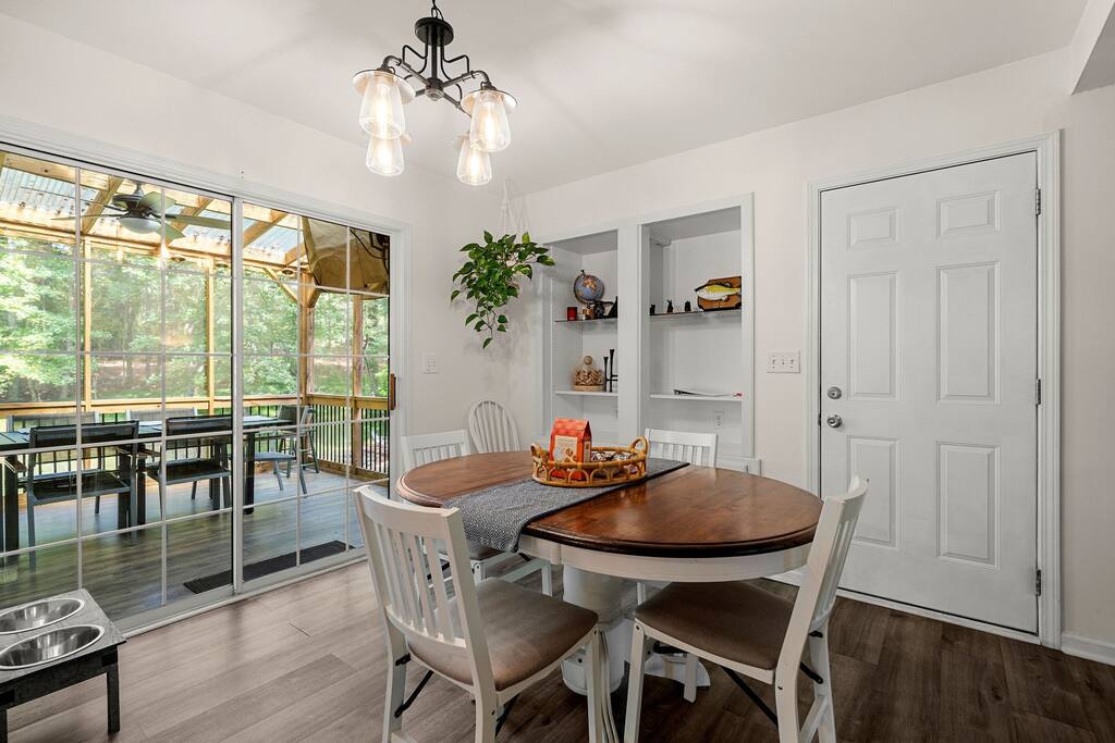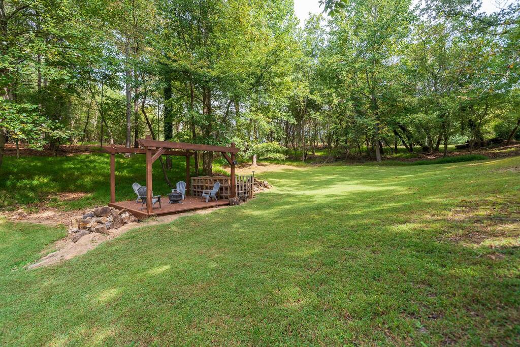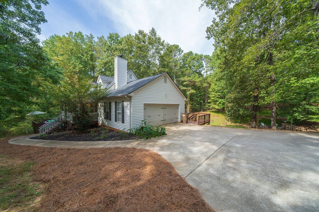Retreat with everything you need. Fully furnished and tastefully designed 3 bedroom home on a quiet 1 acre private property, with a short 5 min walk to a shared boat dock. Home has all the conveniences for a perfect getaway. Enjoy our New barrel sauna(extra Fee applies), campfire in the evening or just enjoy wildlife site seeing. Rent a boat and explore Lake Lanier or relax by the pool. Great for families and those looking to get away to recharge. * POOL CLOSES END OF SEP, OPENS IN MAY!!