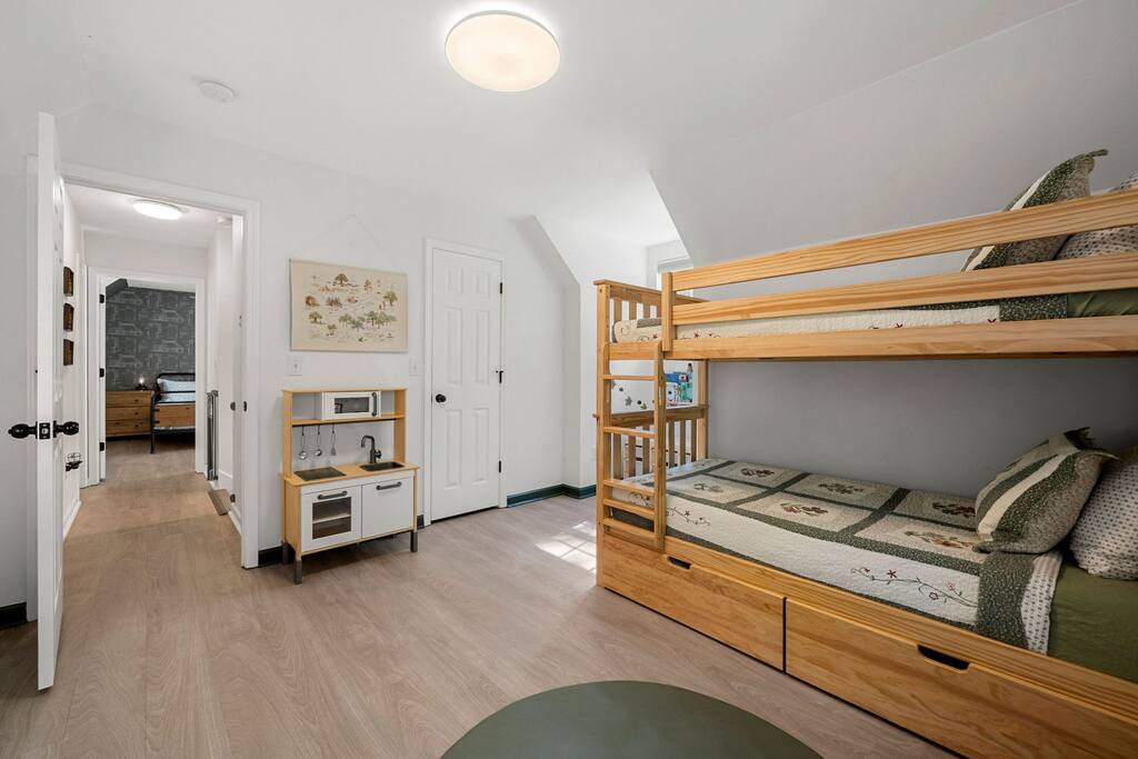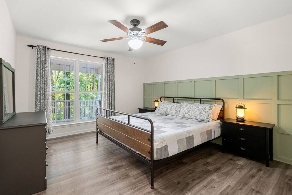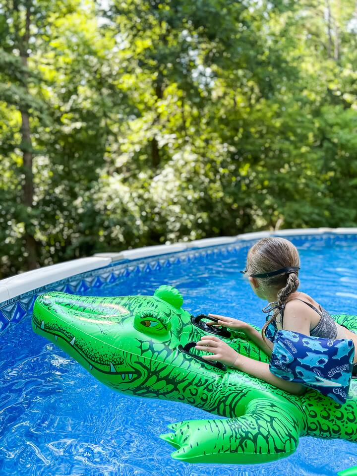 We are located less than 5 min drive to Paradise Boat rental, you are welcome to park rental boat or bring your own and park overnight at our dock. Enjoy your stay and don’t hesitate to reach out if any questions arise! We want to do everything possible to make this stay a five-star experience for you, it makes us extremely happy to hear your great feedback. We would be very grateful for a review if you have a few moments to spare upon your check-out. Thank you for choosing our home! Julie + Alex ________________________________________________________________ ABOUT HOST: We are a young family and happy parents of two wonderful girls (8y + 3y) and three very well behaved and goofy rescue hounds. We love traveling, entertaining guests and very passionate about healthy lifestyle. Recently we fell in love with life at the lake and would like to share this great experience with others. We are new to being AirBnB hosts and are constantly working on improving our charming house between guest stays and busy life with toddler and newborn baby - one step at a time (because we are human, although having superpowers would be very cool), but always trying to move forward, always passionate about what we do, and always working hard to earn your smiles and great feedback after each stay. Unfortunately in the world of Airbnb, a 5-star rating means 'Good', but a 4-star rating means 'Bad'. Please let us have a chance to resolve any problem, concern or issue before you provide us with feedback. We are always available to help. ABOUT THE PROPERTY: You will have full access to the three bedroom home with electronic keyless code to access. Unfinished basement is not accessible at this time; Garage is locked off for owners storage (there are certain things we just can’t store in the basement). Parking is in front of the driveway. There is a private dining patio and back deck with swimming pool; as well as a separate fire pit area. House is located on a quiet 1.5 acre property, there is only one neighbor that might be visible from afar distance through the greenery by the pool side, but we will be working on blocking off that small gap with continued fence very shortly. Other than that property is very private. Our home is perfect for families and those looking to get away to recharge. GENERAL HOUSE RULES: - Additional guests need to be registered. - Registered guests are welcome to use the pool. - No large loud parties please. - This is a smoke free property (one of our children has asthma). No smoking allowed inside or outdoor dining/pool area. Owners only allow smoking at the fire pit area. - Since tiny hands touch our floors, please keep your outdoor shoes by the entry doors. If you are walking barefoot outside, please be mindful and don't bring any dirt inside the house. - We kindly ask that you'd be respectful of our home and treat it as if it were yours. Please take care to not stain furniture or linens. - Respect our towels and sheets; please don't eat or drink in bedrooms. - If you use outdoor TV, please cover it after each use. - Please report damages immediately, guest agrees to pay damages. IMPORTANT HOUSEHOLD INFO: - Pest control is scheduled every month (and sometimes we may do additional treatment same month depending on amount of insects/time of the year, but overall safety for everyone is key when considering frequency of services scheduled). Property is located in heavily wooded area, hence A LOT of bugs. While we are committed to monthly pest control and trying our best to make sure bugs don't bother our guests, SAFETY for everyone from all the chemicals is also very important to us. Usually 5 days after property is treated professionally there is a sudden increase of insects before effects take place. This is normal and unavoidable. While we are seriously committed to Enhanced Cleaning protocols, try our best to leave space spotless after each guest and make sure no insects sneak inside, you may see a spider (or other insect) inside the house on occasion. Yes, this is definitely not as exciting as seeing deer or other visitors by the house. Thank you for understanding! -Fire Pit area is also treated regularly to prevent mosquito invasion. We want you to enjoy the outdoor spaces. - All our bedding is breathable 100% cotton; new mattresses were selected to be medium firmness ( not very soft, nor extra firm). We use hypoallergenic ECOS eco-friendly laundry detergent and fabric softener + a small amount of bleach for safety purposes. - You are more than welcome to bring and use your own bedding if you desire so or need anything special. Some guests chose to bring their own bedding, please let us know ahead of time in case you desire to do so and we will prep the rooms accordingly. - Our heavy duty twin sized bunk bed is not just for kids and can be used by adults according to manufacturer. Limit one adult per bed please. -Air mattress is available upon request. Please let us know if you will be needing it as we store it in owners private storage that is not typically accessible to guests. - We do have infant crib and couple of playpens with mattresses and sheets inside kids bedroom closet if needed. -Infant bedding and mattress is 100% organic cotton. Approx. size of crib is 39.5 x 26.5 x 38.5. - We do have one baby high chair with straps if needed. - We have two kayaks available for guests to use located at the dock. *** Communication is key, please reach out. We are not mind readers or can forecast every persons desires and expectations. We try to provide 100% accurate information prior to your visit, but please reach out with any questions at all. We are always happy to help or resolve an issue to earn your positive feedback in the end, there is nothing small or silly – please ask away! While we try our very best to provide outstanding high quality accommodations to our guests, we are not a hotel and will not tolerate rude or inconsiderate behavior towards our family. If you expect hig